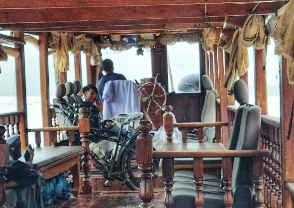 We checked out early from the lovely “On the Mekong” accomm, and they kindly took us and our bikes to the boat station.