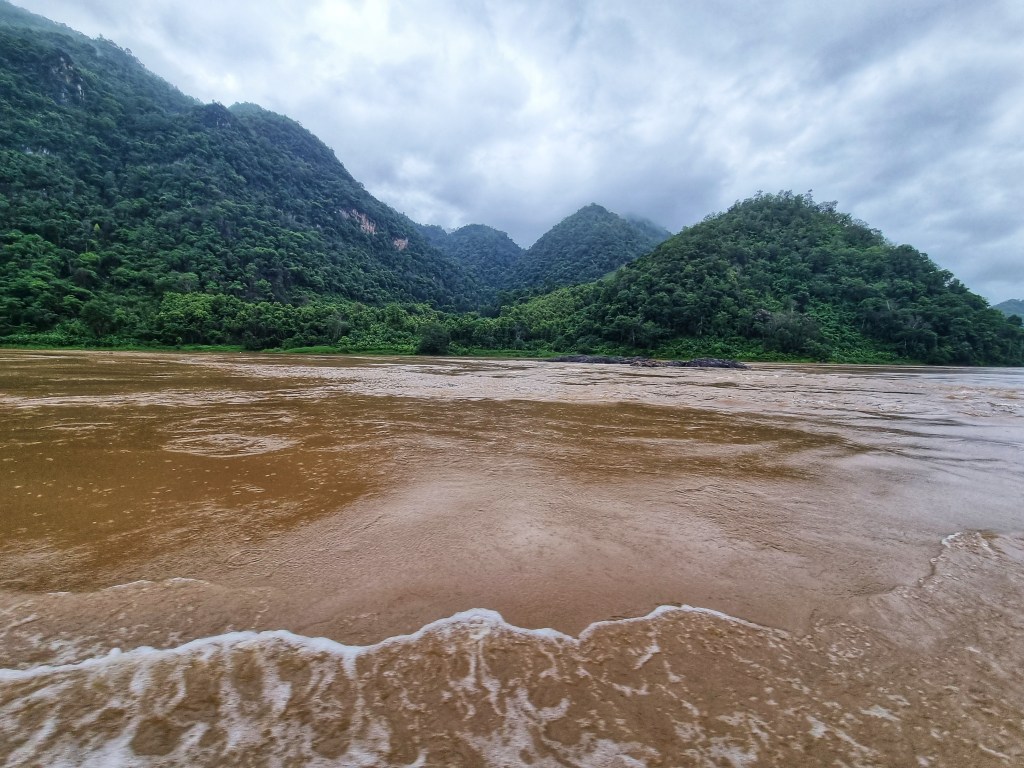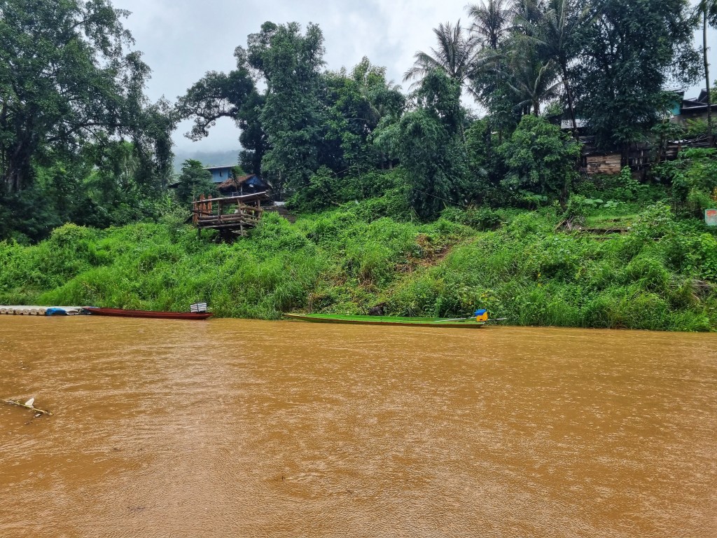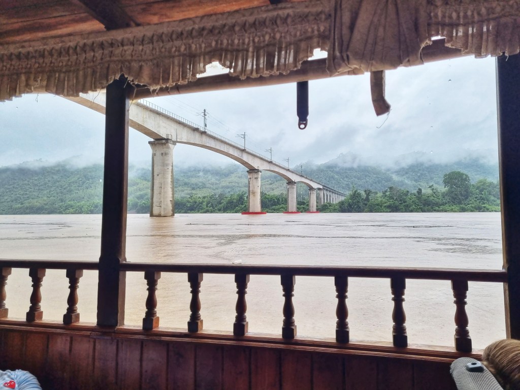 Found a nice eating place up the road, enjoyed a curry and a beerlao, and counted our money anxiously as we’d realised we didn’t have enough Lao Kip for the onward boat journey 😳