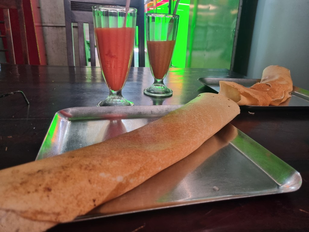 Batticoloa is a bustling city, but we found a quiet little guesthouse near the beach for the night. Too late for “lunch” at the local Indian veg restaurant but we scored a couple of onion dosas with a bit of dahl- yay! Neil was suffering withdrawals after no dahl in sight for a few meals. A (hot) afternoon spent exploring the city.