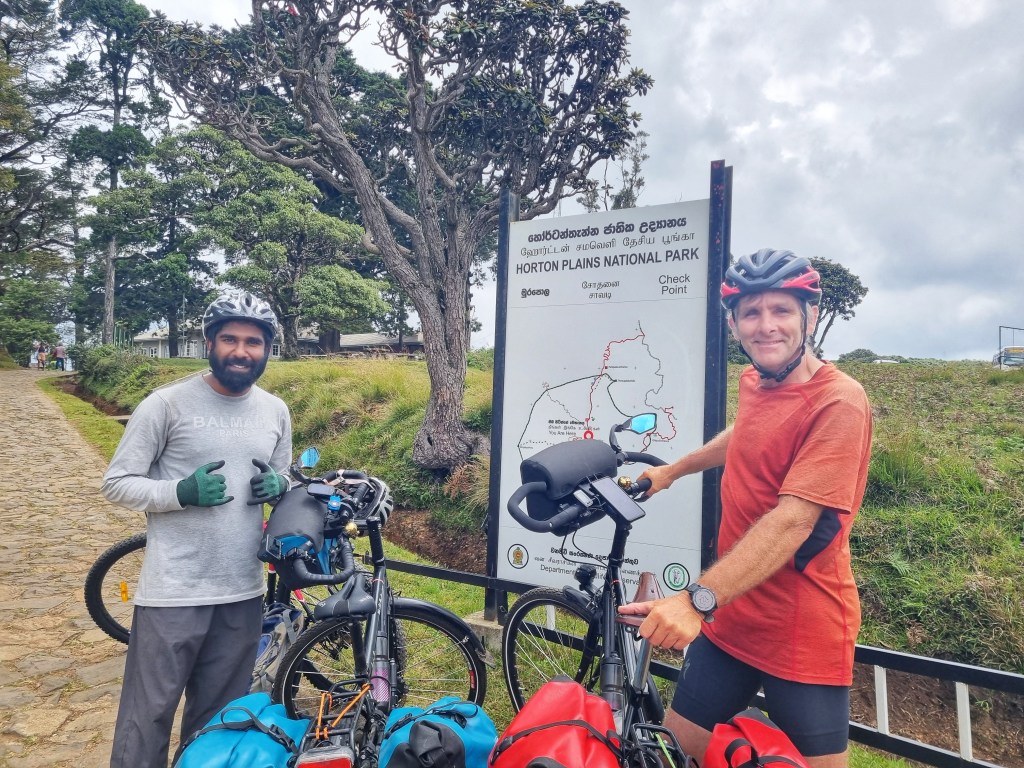 Sambur deer, birdlife and a 5km walk to another speccy waterfall punctuated the Horton Plains national Park…no leopards, for which we were somewhat thankful as the sky was darkening by the time we rode out the other side!