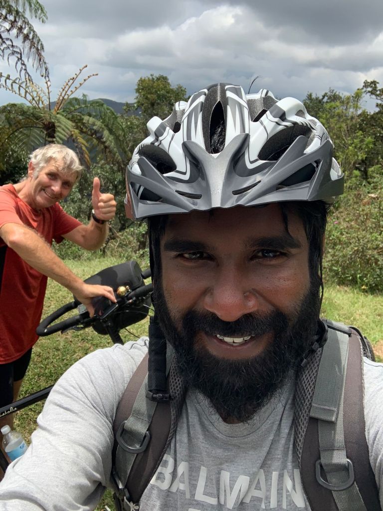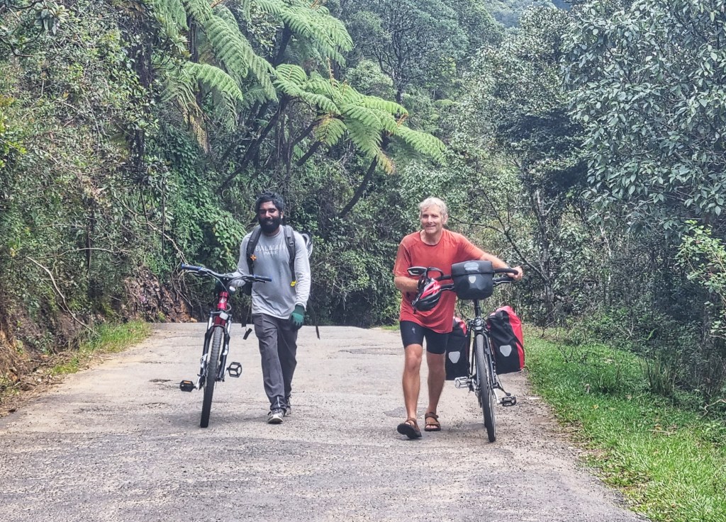 An excellent breakfast at the hostel saw us on our way with Suj for a really great day of exploring. Suj led us through the majestic colonial buildings of the township before heading out toward the steep climb up to Hortons Plain. A really scenic ride the whole way…and quite a bit of walking our bikes up the really steep bits 😳