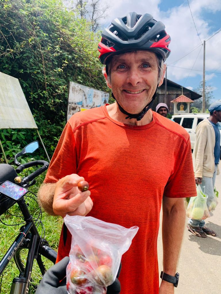 A couple of nourishing meals shared with Suj- Shared a bag of sour guavas (wild fruits picked from the surrounding jungle) whilst waiting for the train to pass through the level crossing at the highest railway station in Sri Lanka, a terrific plateful of Samosas and Rotis at a little stall close to the beginning of the big climb…and some delicious curry buns later that we picked up from the very fancy bakery at the Grand Hotel for approximately 10 times the price you’ll get them on the street…