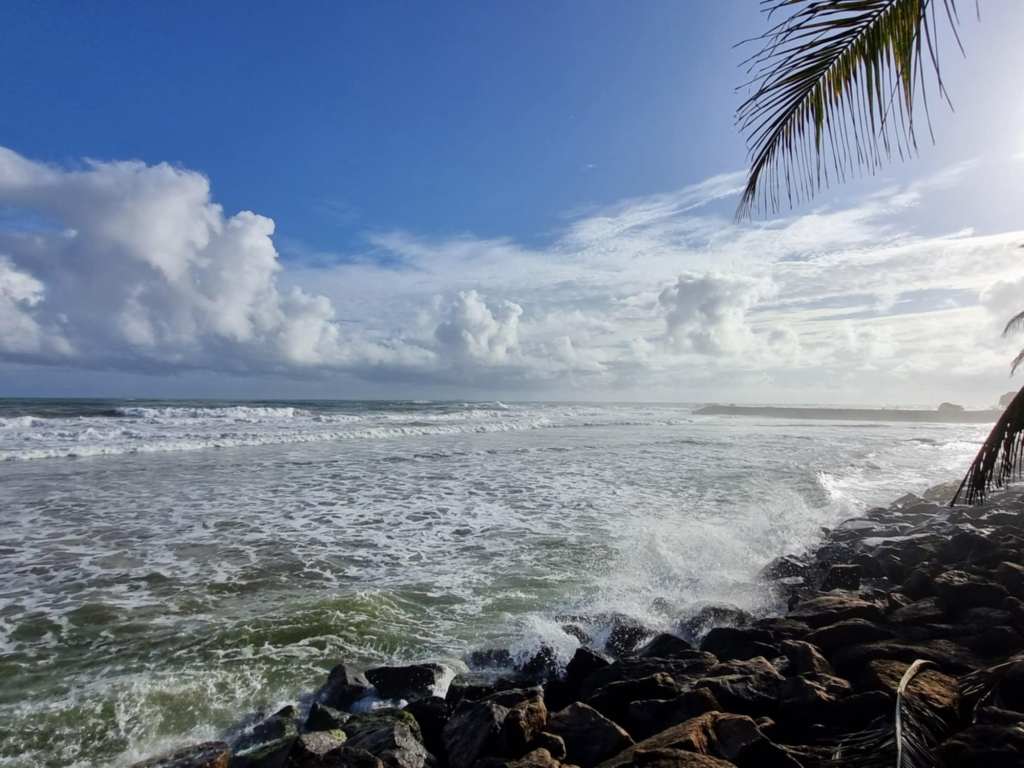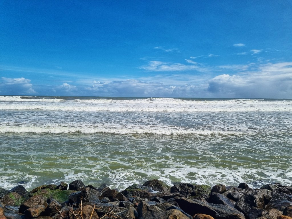 Reached the Southwest coast huge monsoonal waves crashing into the seawall. The air misty with salt spray.