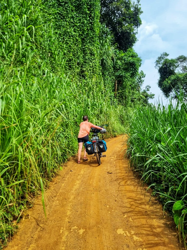Somewhere around 4 hours later we’d covered not much more than 20km. And covered ourselves and our bikes with mud and grime… we had to stop constantly to clear out the mud from the mudguards and derailluers just to keep peddling.