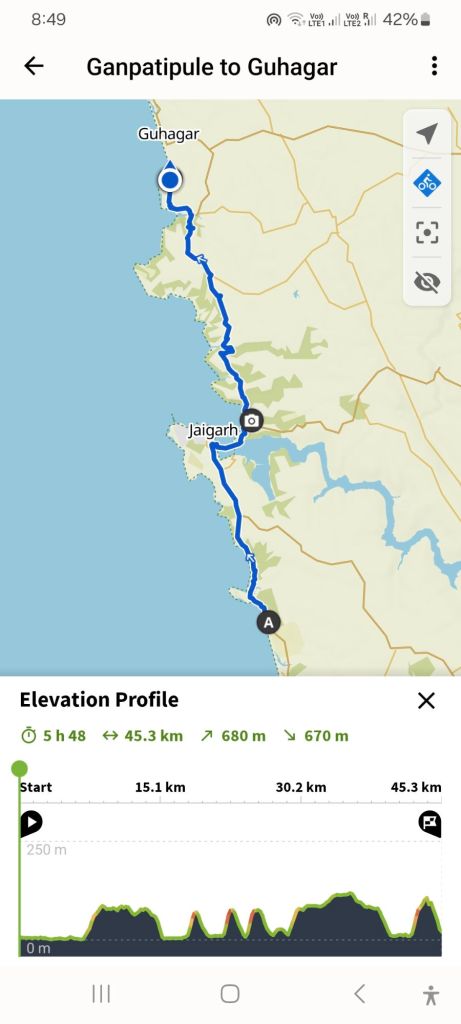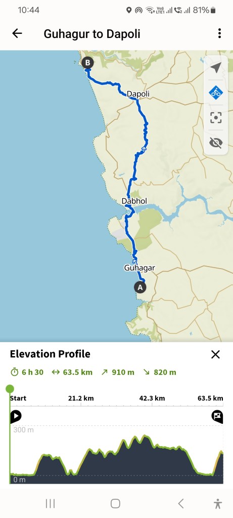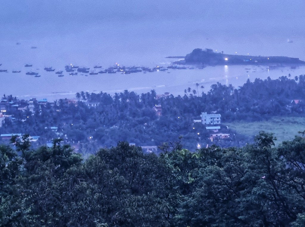 Aimed back for the coast at Dapoli and thought we’d stop enroute at what looked like a pretty nice place. But no internet along this stretch so we couldn’t check the location, the price or the altitude properly…and somehow it threw us in an unexpected (and unwelcome) hill to end the day. Nevermind…the price was right and the place was amazing! Elevated views, lovely clean and modern room and a great breakfast.