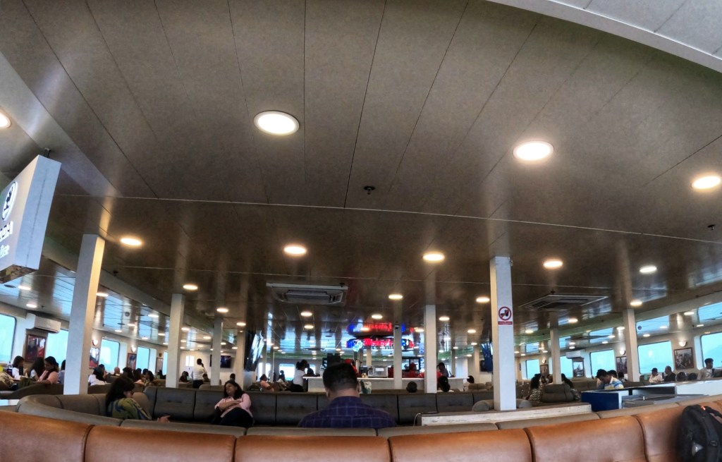 Well that was probably the fastest 10km I’ve ever managed. Luck was (just!) on our side. We arrived at the ticket booth about 4 minutes before departure time…and by the time they managed to issue us with tickets, and tell us to “hurry hurry- straight that way!!” we managed to hot foot it onto the ferry pretty much as they were raising the drawbridge. No time to think of photos for this bit!! Love to know what they thought of two very hot and disheveled looking foreigners as we scrambled to make it on before they left the dock!