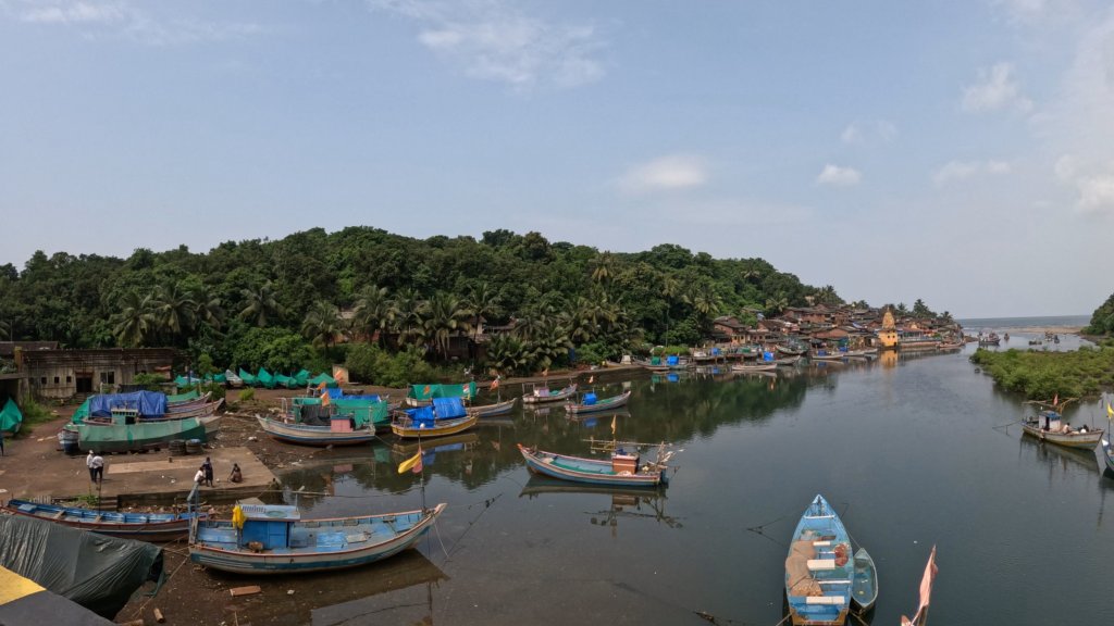 20km or so in and we found the ferry spot at Jaigad… waited there for an hour for the ferry to turn up but it cut off quite a few km from the long way round. As we discovered today it’s also a great opportunity for many conversations…and selfies… some very eloquent English speakers wanting to make our acquaintance and pose with a couple of wrinkled and sun affected Tasmanians and our bikes.