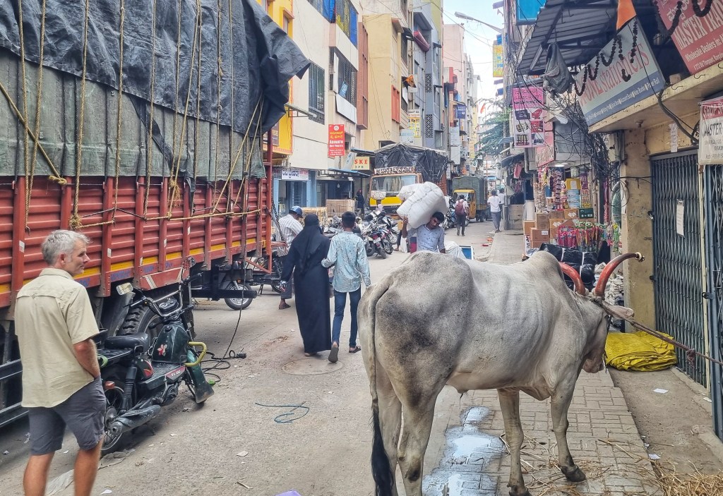 Indian traffic: it’s all about squeeze room and trying to make space for yourself. Normally roads are all about parallel lines, Indian traffic is like riding or driving into a triangle.