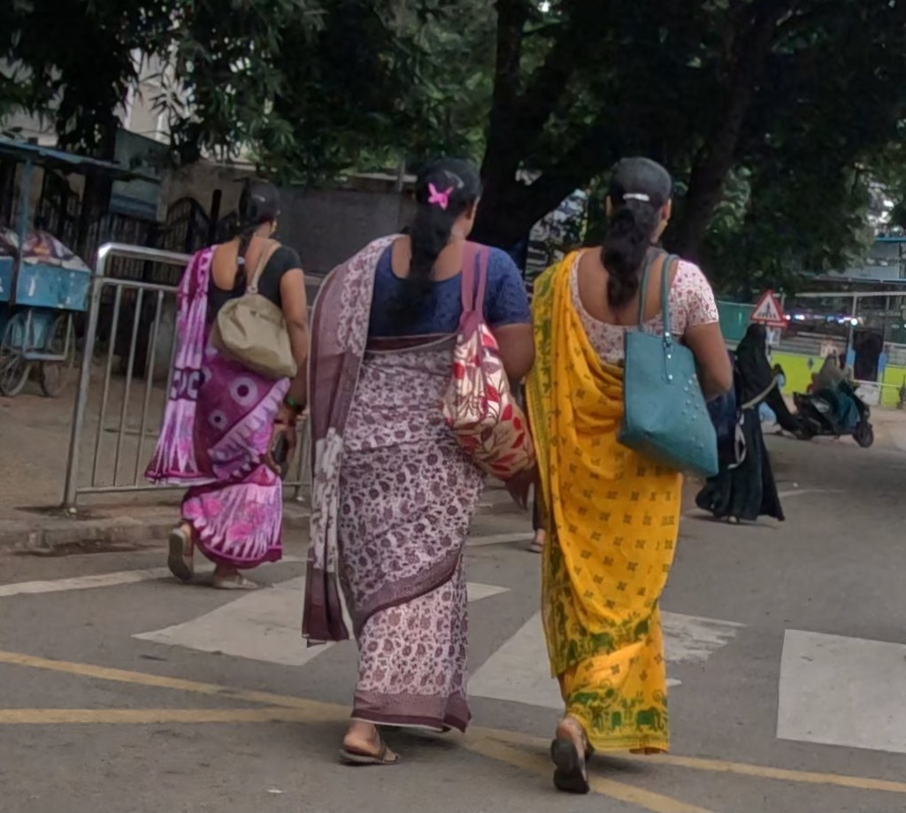 Colours everywhere! In every Indian state the saree rocks and they are beautiful and bright.  In Southern India most of the men also wore a (plain) version,  a sarong I guess, tucked up over the knees most if the time.  As we ventured further north, and especially in the big cities, men were dressed more western style.  By the time we reached Delhi there was not a male sarong in sight, even amongst the poorest.
