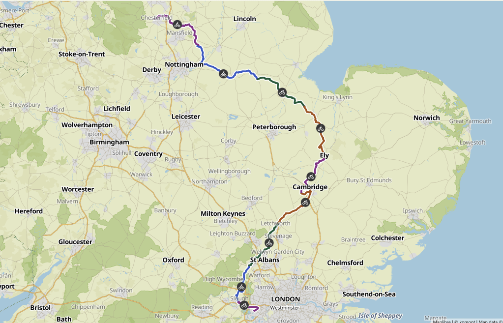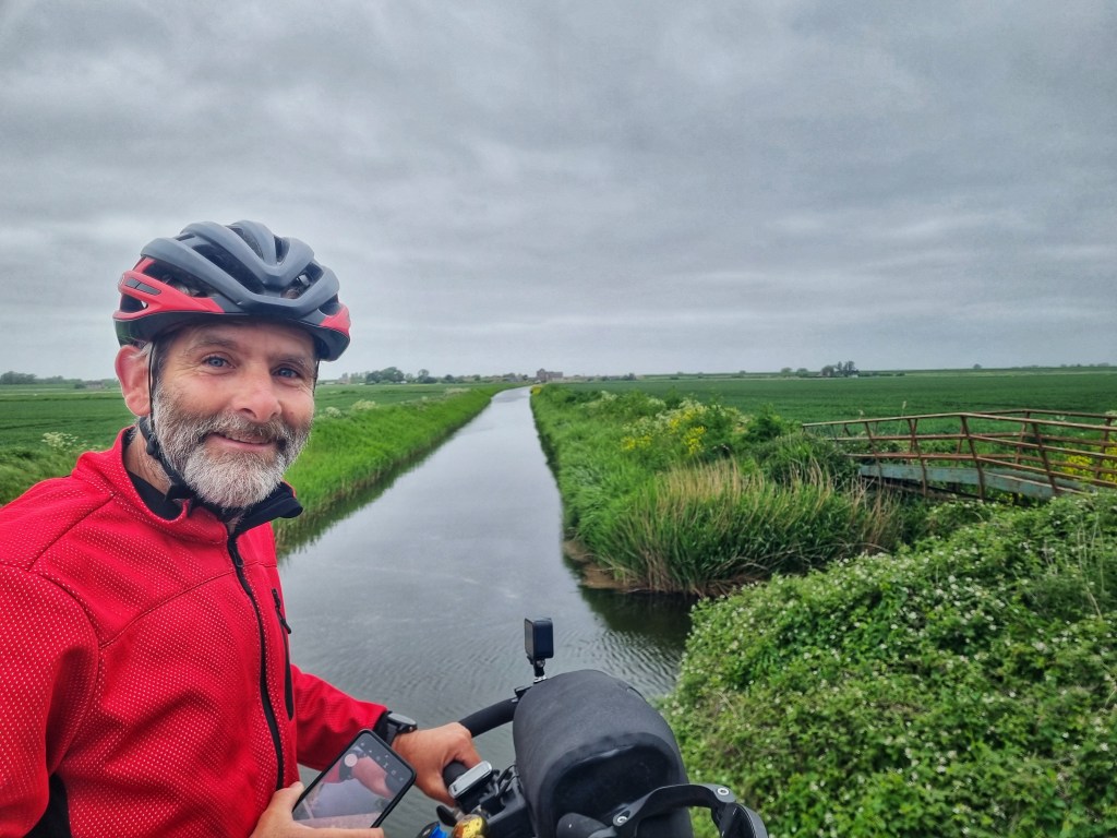 Today was cold. Windy. Cloudy. A stiff N/Easterly straight off the North Sea. Many layers needed…and we made it to Wisbech Wetherspoons (UK cheap Pub chain) just after 12 …fractionally too late for their endless coffee cup Brekky deal, so we had to settle for an all day brunch + pint deal. Very nice! Except we hadn’t finished riding for the day so the beer might not have been the best idea…