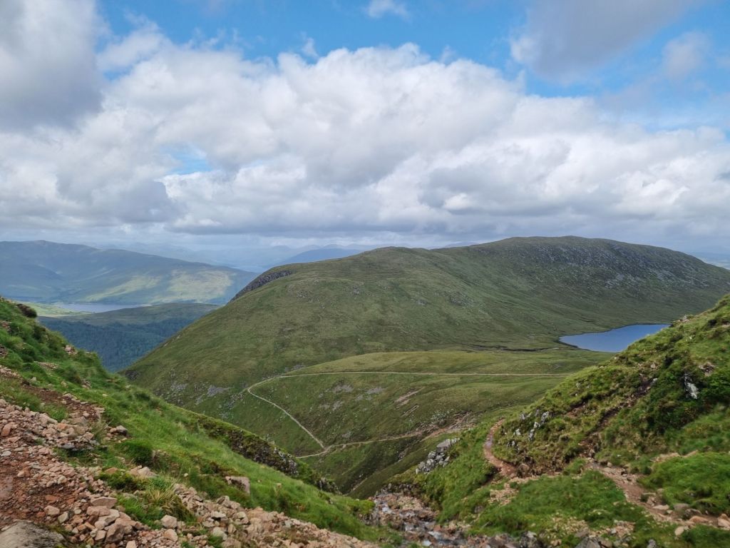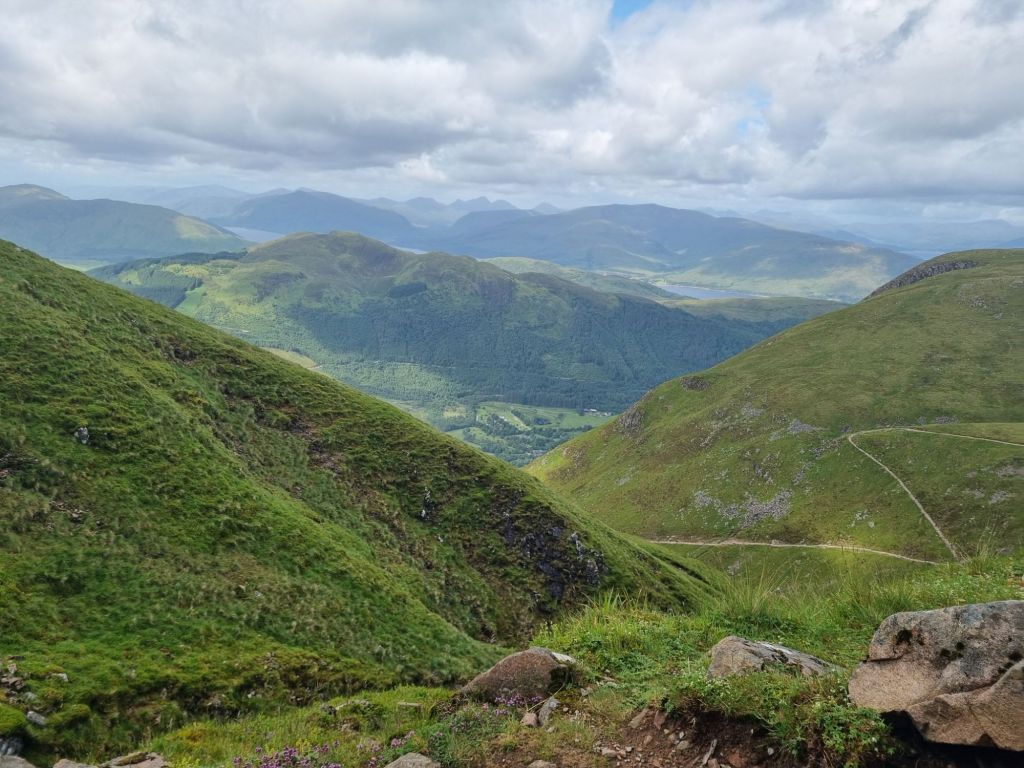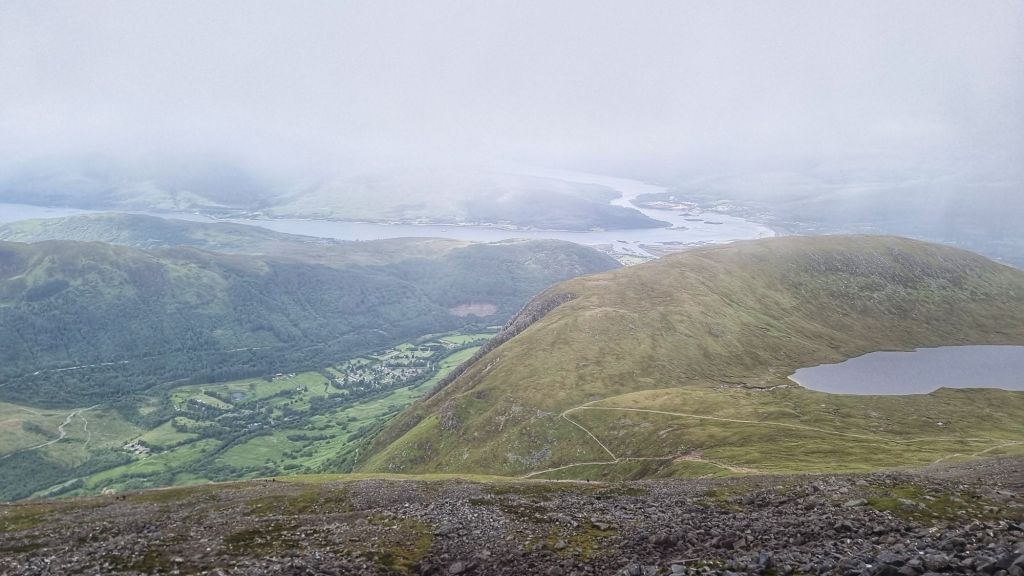 Ben Nevis is the highest mountain in the UK at 1344m. And a surprisingly accessible walking path to the top. We set off around 10:30 after a lazy morning waiting for the rain to stop.   Lovely sunshine for a while, giving us awesome views as we trekked up the hillside.  Glad we stopped for a few happy snaps,  because by the time we reached the  3/4 mark the clouds descended, the rain and hail started and bitter cold set in.