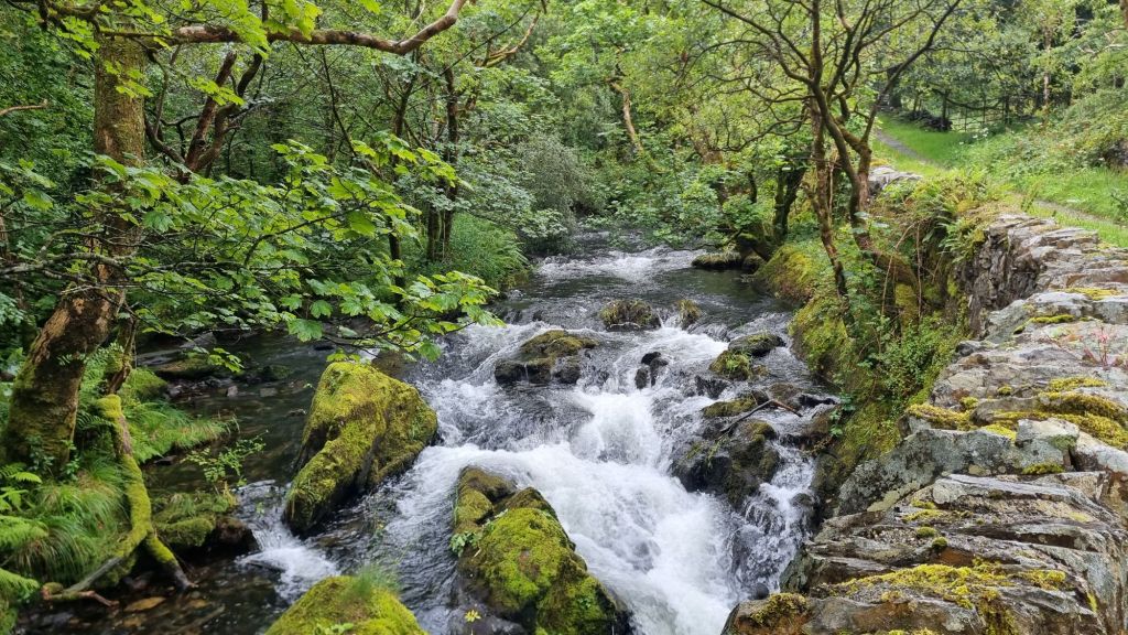 Today we followed cycle route 82, to Dolgellau. Truly fantastic scenery, riding along really quiet roads and some off road paths. Following rocky fast flowing rivers though steep sided valleys with mist cloaked mountains above. Some hills and open country past a decommissioned nuclear power station. Then a descent in woodland and a maze of bike paths to our bed and breakfast in Dolgellau.