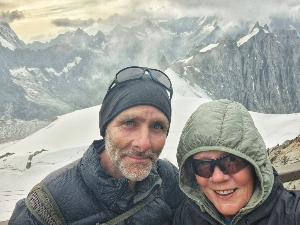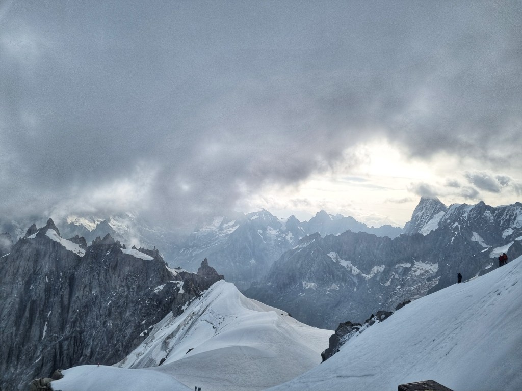 My oh my- a cable car to Aguille du Midi. What a way to top off a splendid few weeks in France. An early start to beat the forecast nasty weather, and spectacular views of Mont Blanc and the surrounding peaks, despite the looming clouds.
