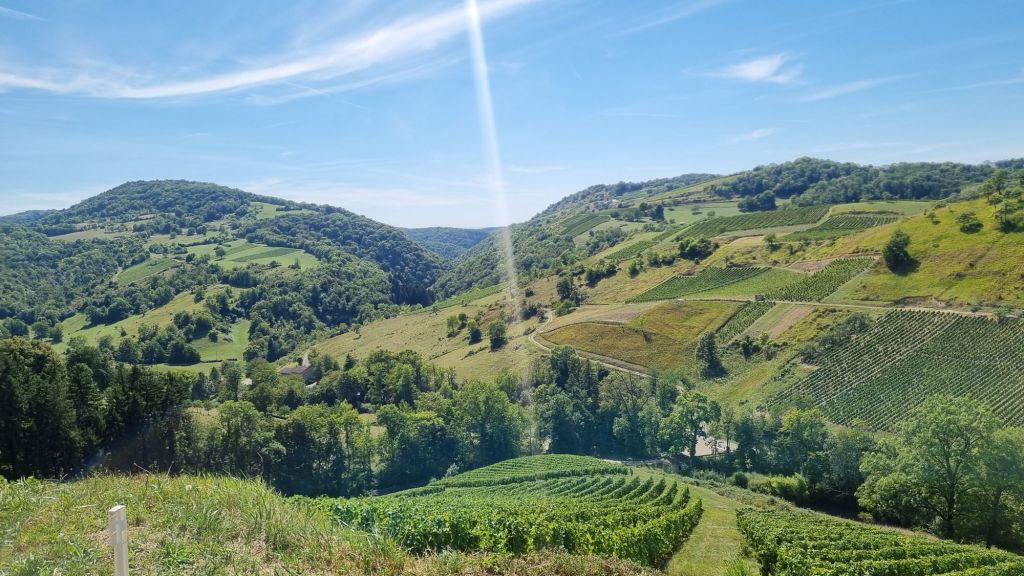 A nice cool but dry day to start, and some hills now creeping in as we head toward the French Alps. ‘Twas nice to have some different landscapes and even the hills weren’t too daunting after 3 weeks of flat! May not be saying that tomorrow…
