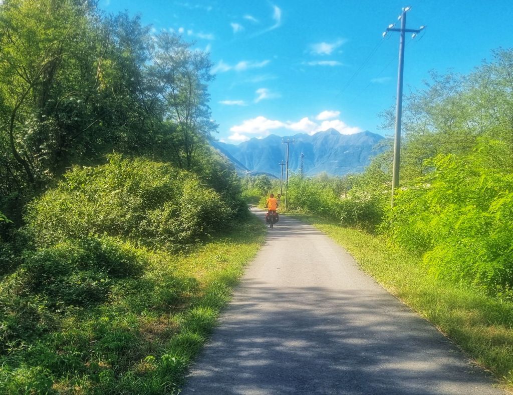 Back into Switzerland! A ferry across Maggiore then a somewhat nervewracking ride, through very built up areas. You can often tell the nationality of the drivers by the way they treat cyclists. Huge generalisation here of course. French and German drivers are super courteous and careful. Swiss don’t give us much room. Italians drive little cars but there’s a mighty lot of “vrooming” and speeding by with little room to spare.