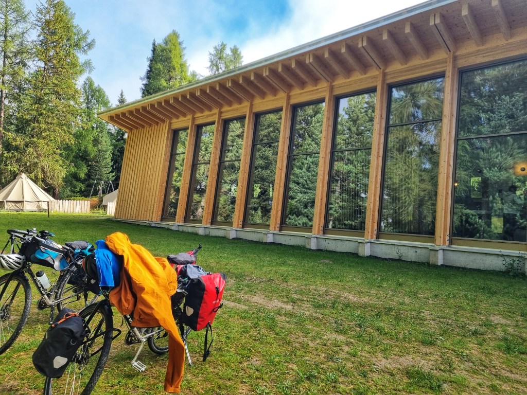 Our last day in Switzerland and it certainly didn’t disappoint. Finished the day at another campsite, with another view: This was the cost record breaker so far – the equivalent of $90 AUD to pitch our tent on a patch of grass! But the amenities are oh, so swish. Lovely warm, modern buildings to shelter and cook.