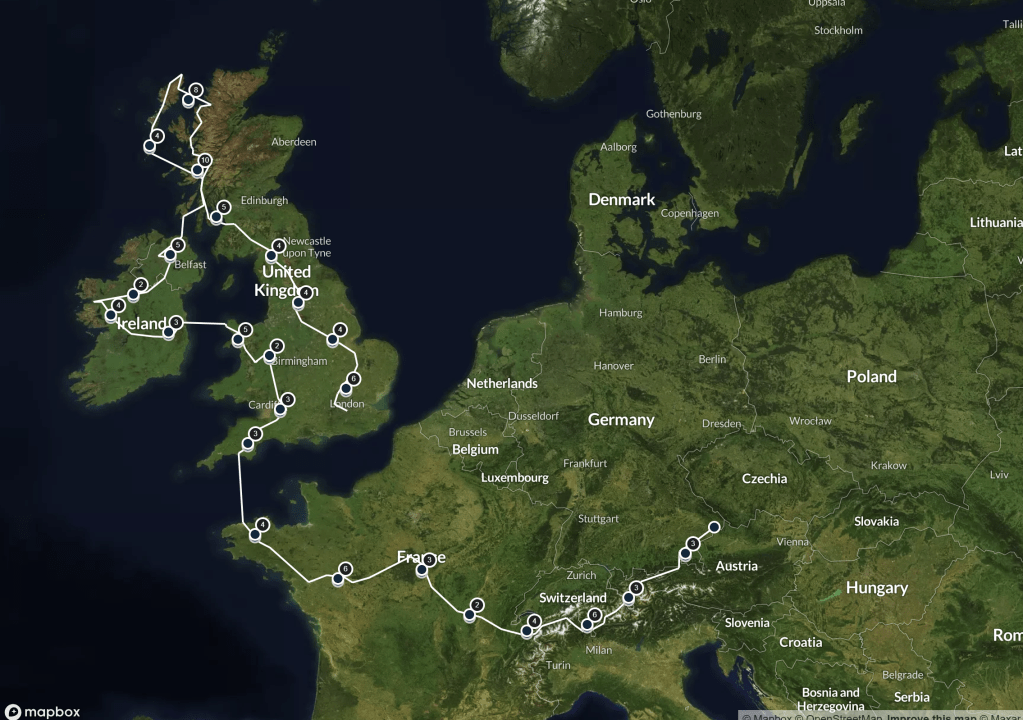 Our route map so far is at https://www.komoot.com/collection/3509510/-uk-and-europe